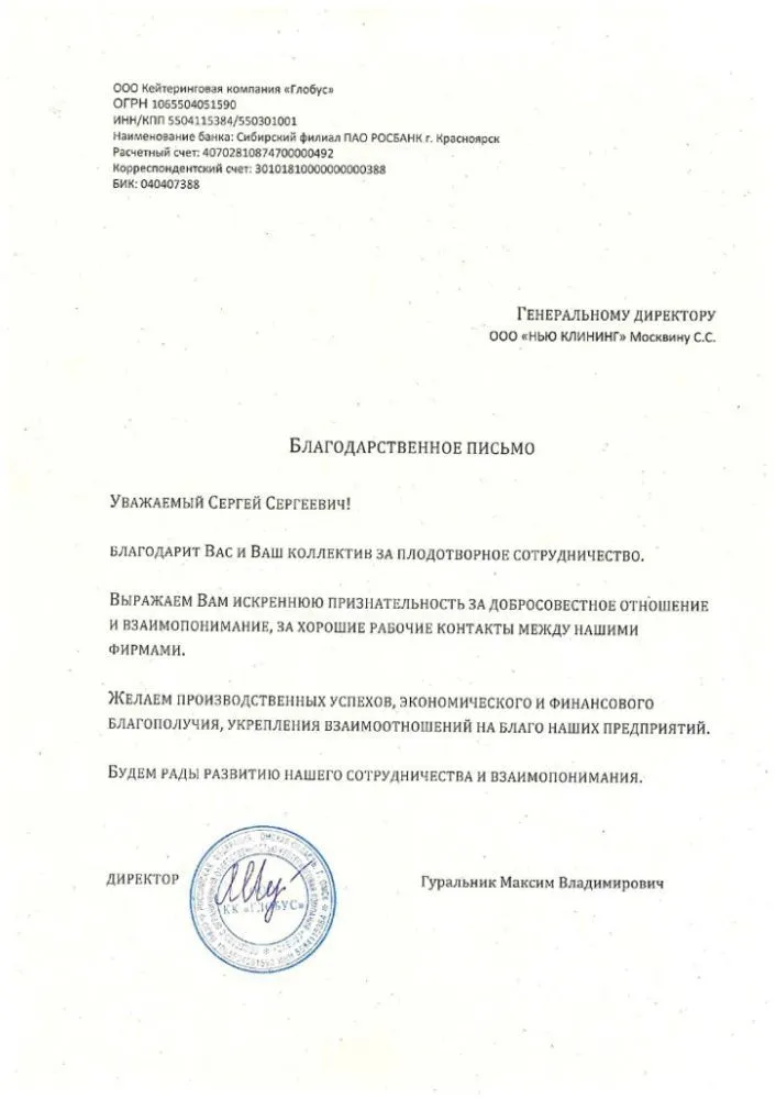 Благодарственные письма Письма